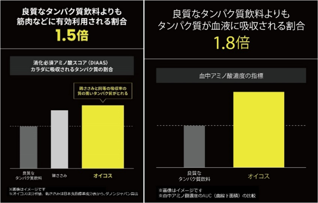 ※3:「ダノン オイコス」は分析値、ささみは「日本食品標準成分表(八訂)増補2023年 にわとり/ささみ/ゆで」のアミノ酸からDIAAS(消化必須アミノ酸スコア)をダノンジャパンが算出して比較